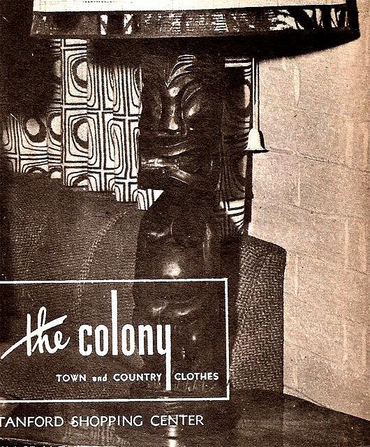Here's a larger table lamp from a Stanford, California clothing store ad dated 1958. This would be more of a household decor piece than a restaurant table lamp.