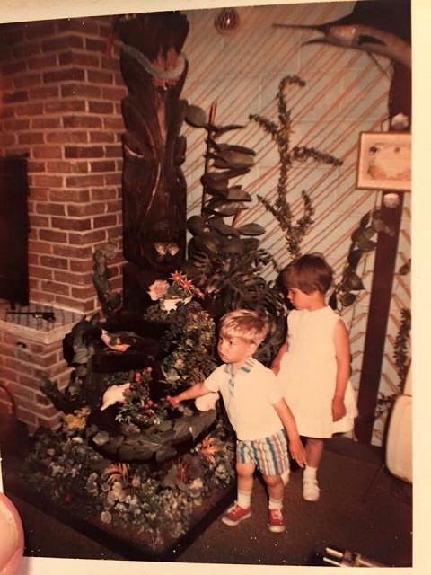 How to interpret: The parents (Mary & Joseph) of Tiki are represented by the Hula girl (the Hawaii craze), and the caveman (primitive art). Further influences ( the three wise men) were the space age, cartoons, and entertainment (music, movies) We also have Witco (the Mama Lama bar), and it's anybody's guess what the turtle represents :) |