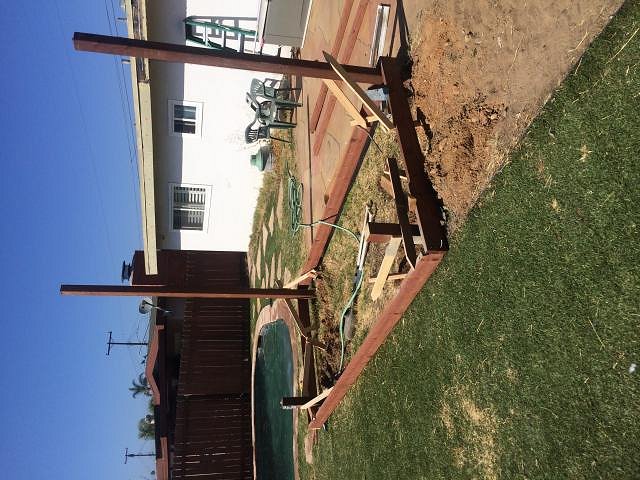 a number of years ago I had moved in with my girlfriend who was a single mom and the only improvements to her backyard was a pool. So we decided on building some free standing party decks with a sails as covering. After that, we built a deck around the pool with a tiki hut like palapa. Sadly not long after completion and only one party we broke up. After we completed the patio cover and deck I moved to the corner of the yard. All the trees and shrubs had to be cut down and 32 piling footing needed to be set. I did this by myself in one weekend. Thatching of the roof is the only time I had any help. That was actually the hardest part of the whole job. More images to follow, once I figure out how to post them. [ Edited by: Boatking 2019-05-09 06:40 ] |