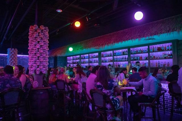 Ugh. This place will crash and burn in under a year. That’s so bizarre how closely they are to the Three Dots aesthetic and mugs. Even the banana dolphin (which, I know is not exclusive to 3 Dots or LL, but is highly visible in their garnishes). The interior theming here seems half-baked. A little thatch, some “mood lighting” and, “oooh, what if we had skulls surrounding the support beams!!” Huh?!