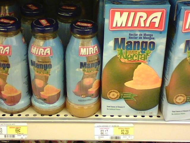 The best among them is Mi Casa. With only 23% juice it actually tastes more like fresh mango juice than the others; plus, it's the cheapest at 99ยข.