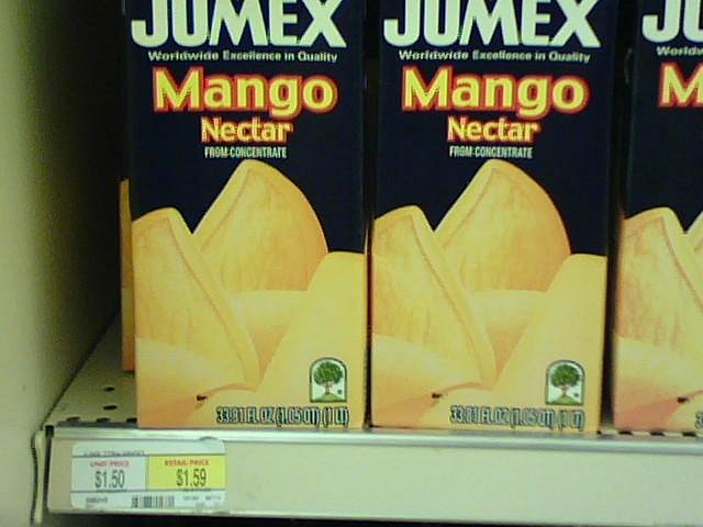 I've always been a JuMex girl myself (Mexican brand, hence pronounced "Who Mex", as in "jugo" (juice), not "Jew Mex"!). It's cheap and tasty. I'll have to try the Phillipino stuff; no sacrifice - I LOVE mango (as mentioned on Swanky's how-to-dice-your-mango thread)! |